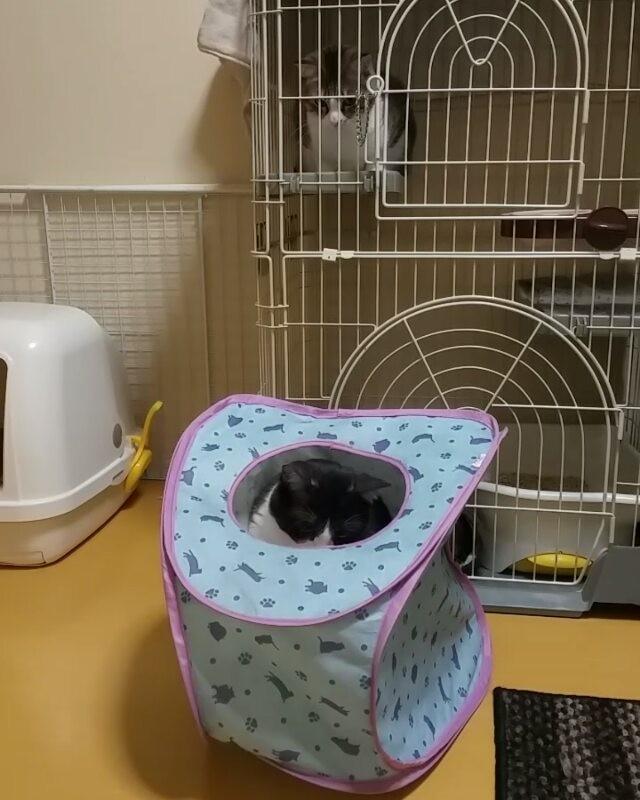 ・ 暴れるのび太 冷めた目で見るジャイアン ・ #猫#ねこ#ネコ#cat#キジシロ#キジ白 #はちわれ#ハチワレ