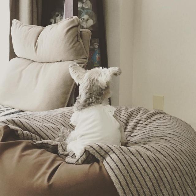 皆さん٩(● ̇▿ ̇●)۶...⋆ฺ*お⋆ฺ*は⋆ฺ*よ⋆ฺ*...ございまつ...寝起きの顔はおばあちゃんでもチョット恥ずかしいのでうしろ姿で失礼ちまつ。・#minatureschnauzer #ミニチュアシュナウザー #16_years_old #シニア犬 #がんばれjiji