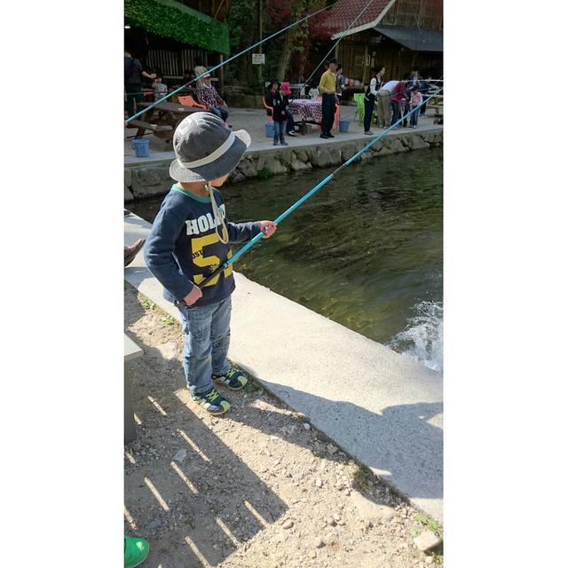 GWふりかえり3おしまい.広島の祖母の家に帰る途中、ヤマメの釣り堀があったので、ヤマメ釣り.ヒビト、一匹釣ってた☺︎.捕ったやつは塩焼きにしてくれてそこで食べられる時間なくて、そこでは食べんかったけど・・・。.また来よっとー。.#ヤマメ #ヤマメ釣り #釣り堀 #渓流茶園 #広島県 #安芸太田町 #4歳