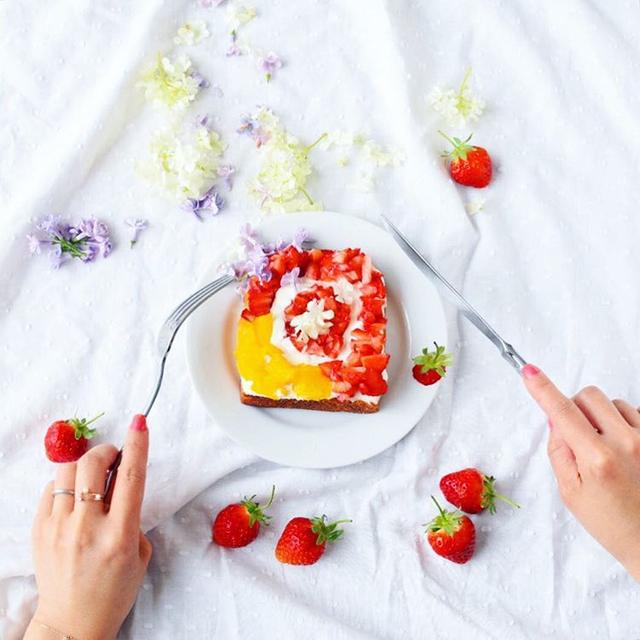 Congratulations for new logo!@Instagram..アイコンオープンサンドの朝ごはんでこんにちは..昨日は1日IGする暇がなく,今朝見たらアイコン変わっていてびっくり.可愛かったのでnewアイコンのフルーツオープンサンドにしてみました..アイコン食べちゃうぞみたいな\(◡̈)/♥︎..金曜日ですねー!休み明けだからかなんだか今週長かったな..今日もあと少し頑張ろー!...2016.5.13...