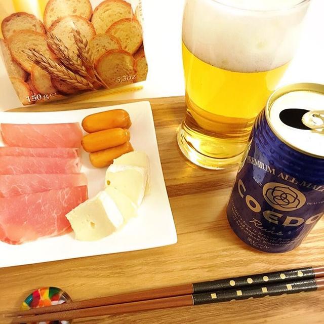 金曜日ってことでちょびっと贅沢な肴と地元ではイマイチ人気のないコエドビールで 私はコエドビールは好きだけどなぁ〜♪( ́▽`) #ビール #クラフトビール #コエドビール