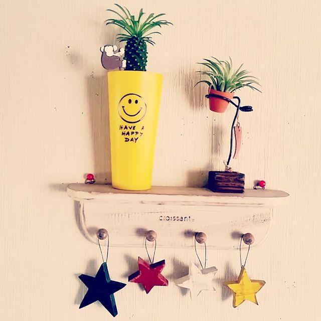 友達に貰ったラックをやっと飾れた✨お気に入りのエアープランツとパイナップルコーンの定位置が決定✌ #星のラック#雑貨#エアープランツ#パイナップルコーン#藤井さんありがとー#花のよしもと