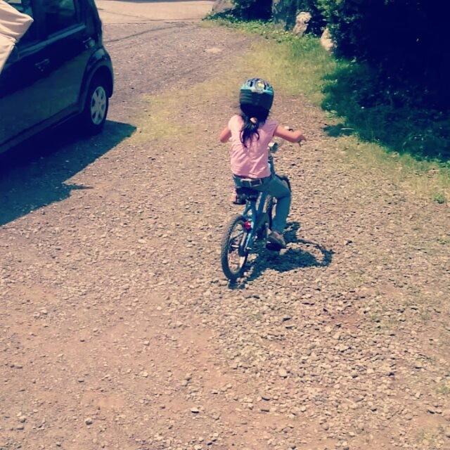 「どうしても乗れるようになりたいの。」 父と兄がキャッチボールをしている横で、ひとり黙々と練習していたらしい。 見上げた根性。 #補助なし#自転車乗れた#がんばりやさん