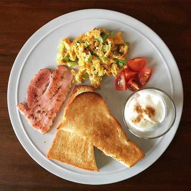 パン食にハマってるので、本日も食パンで朝昼御飯。旦那さんが厚切りベーコンが食べたいとの事で厚切りベーコンでちょっとアメリカンな見た目になりました。 #朝ごはん #ランチ #ワンプレート #トースト
