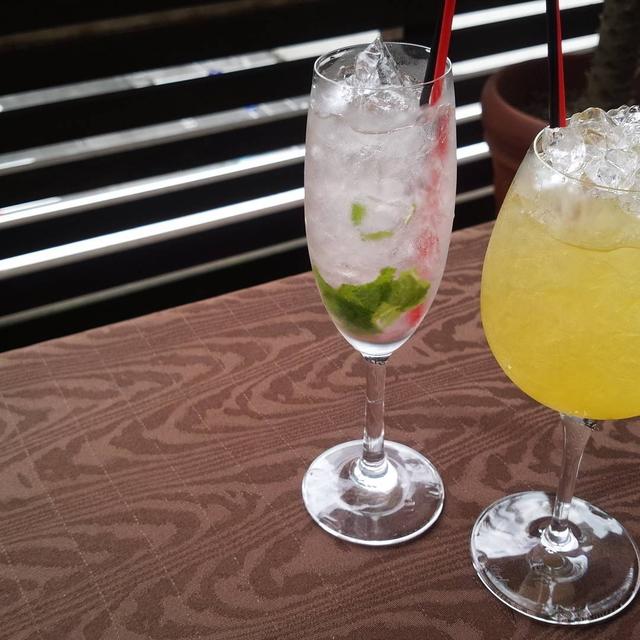 お昼からワインカクテル ぜいたく~(* ́ω`*) #ワインカクテル #お昼からワイン #テラス席 #ミラボー #小倉