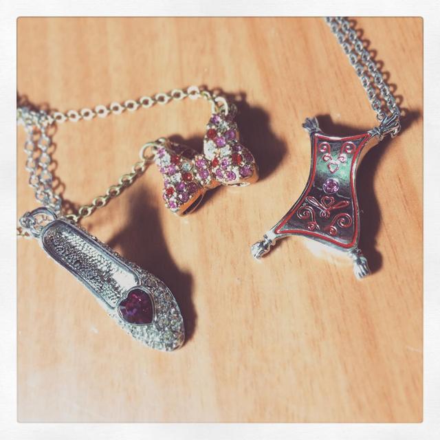 アクセサリーの整理してたら 見つけた シンデレラのくつと、 アラジンの魔法のじゅうたん、 ミニーちゃんのリボン #disney #シンデレラ #ガラスの靴 #アラジン #魔法のじゅうたん #ミニーちゃん #リボン