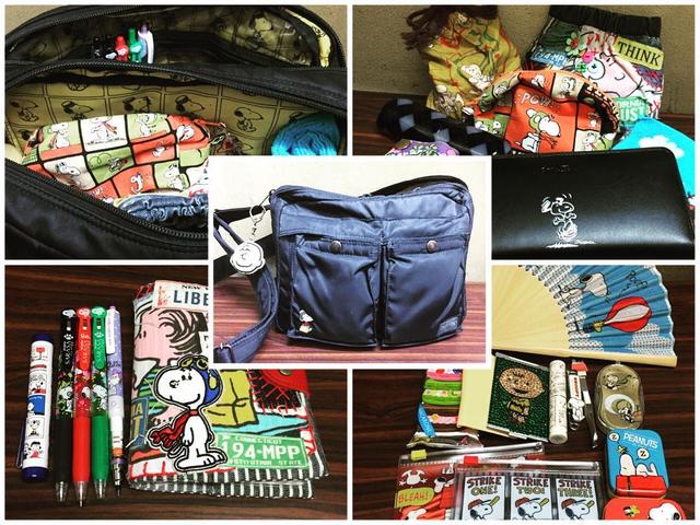 鞄がパンパンで重すぎるので中身整理がてらの#鞄の中身#長財布 #飴ちゃん巾着 #お化粧ポーチ #手鏡 #毛抜き #爪切り #リップクリーム #綿棒 #糸ようじ#薬ケース #お裁縫道具 #ボールペン #カードケース #ハサミ #タオルハンカチ #ティッシュ #老眼鏡 #キーケース #扇子 #絆創膏 #あぶらとり紙さらに、あぶらとり紙の予備とかボールペンの替え芯とかメモ帳の予備とか・・・鞄掛けるだけで肩こり#ポーター #吉田かばん #コーチ #スヌーピー #snoopy #peanuts