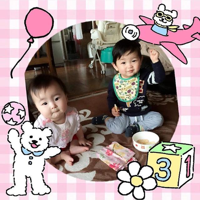 ふたりとも大きくなっちゃって☺️ 同じ歳に見えるようになってきたな #女の子#男の子#7ヶ月#1歳1ヶ月#甥っ子#baby#
