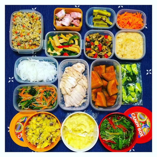 .そして1回載せてみたかったやつ笑.さつまいもサラダマッシュポテトサラダ人参ほうれん草もやしナムル新玉ねぎスライス鳥ハムかぼちゃ煮付けきゅうりピリ辛浅漬け離乳食ごはん野菜彩り炒めアスパラベーコンあさりとムール貝と野菜のソテー蒸かしさつまいも息子用ごまおかかとろろキャロットラペと、豚汁大量❤️.疲れたw