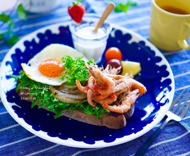 .gm〜☀️.地元の夏食材#川津えび が出てきました#淡路玉ねぎ と一緒に#兵庫県産 ばかりのオープンサンド.うまいっ!!!たまらなくうまいっ!!.期間限定カフェしようかなこれしかできないけど(笑).ご近所の皆さん〜川津えび ゲットしてくださいね(๑^ ^๑)ノ.昨夜の豪雨一転気持ちよいピーカンな青空が広がっています今日もいい日を作ってまいりましょ♪have a good day.