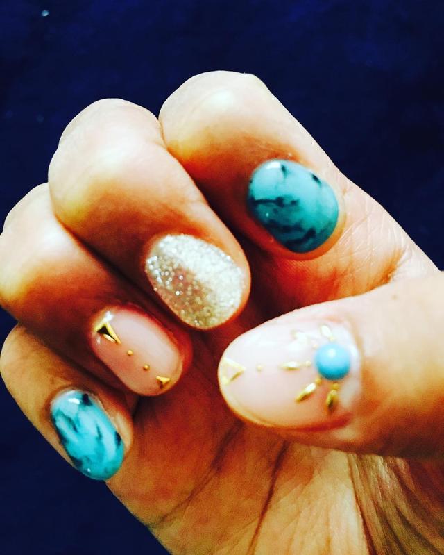 久々にネイルしてもろた♡ #ターコイズネイル #地黒にもってこいのターコイズ