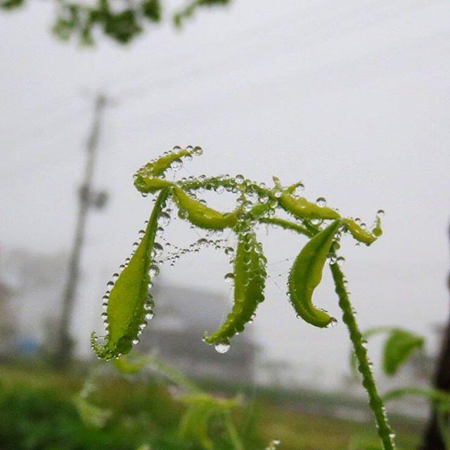 #朝露 #ツブツブいっぱい #葉っぱ 葉っぱにもツブツブいっぱい(*^_^*)