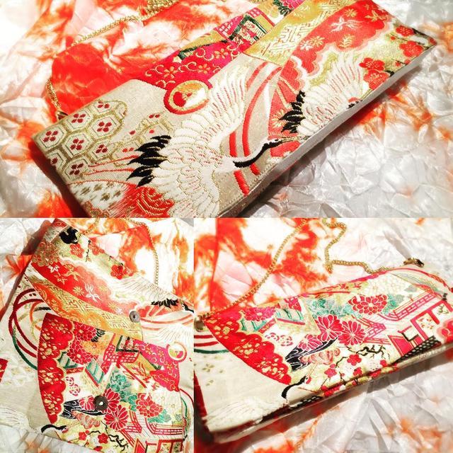 【自作シリーズ】袋帯クラッチバッグ。しばらく前に作ってあったモノをup。今回は小さな端切れだったので、極々シンプルに。内側は生成りの縮緬にしました。コテコテキラキラの和柄だから和装よりも、シンプルなジーパンとかのが、ポイントととして使い易いかも?#onlyone #リメイク #remake #帯 #クラッチバッグ #手作り