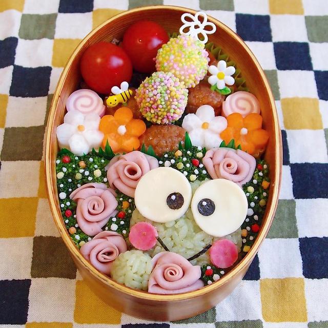 今日の旦那さん弁当。*けろけろけろっぴと薔薇ハムと言う、何とも変な組み合わせ(笑)昔けろっぴが大好きで、色んなグッズ持ってました。最近昔のキャラが復活してるのかな?タキシードサムとかも可愛くて好きだったなぁ。*お弁当に使ってるカラフルな粒々とお花の材料をよく聞かれます。何度か書いてますが、また書かせて下さいね。粒々はぶぶあられで、ネットで購入してます。*お花はスライスチーズやビアハムなどを型抜きして作ってます。型抜きに関してはシュガークラフト用の物を使用しています**#お弁当#曲げわっぱ#キャラ弁#デコ弁#旦那弁当#ぶぶあられ#おにぎり#おむすび#ロカリクッキング#kaumo#サンリオ#けろけろけろっぴ#サンリオ弁当