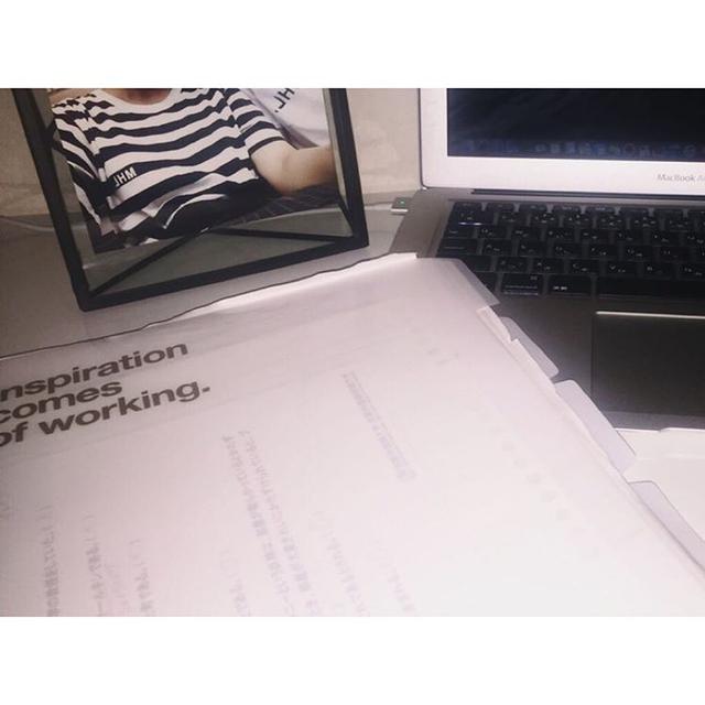. . hwをしてるなう。 . . #おそろい#MHL#margarethowell #去年買った#Tshirt #明日1限から#