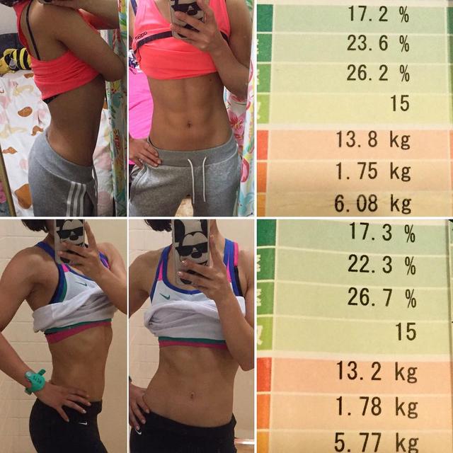 昨日はぐーたらトレ(._.)投稿しようと打ちかけて爆睡しちゃったので朝から•••笑筋トレ後のランも完全サボってしまったので代わりに体重計測して2,3月頃と比較!(下が昨日)上から体脂肪率→腕の脂肪率→脚の脂肪率→内蔵脂肪指数→筋肉量→腕の筋肉量→脚の筋肉量体重−2kgだけどなんだかなー最近ランをサボりがちが原因かなと反省ヽ(`Д ́#)ノとりあえず今日もがんばっていきましょ#fitness #gym #コナミ #筋トレ #腹筋 #beforeafter #体脂肪率 #筋肉量 #adidas #nike #反省