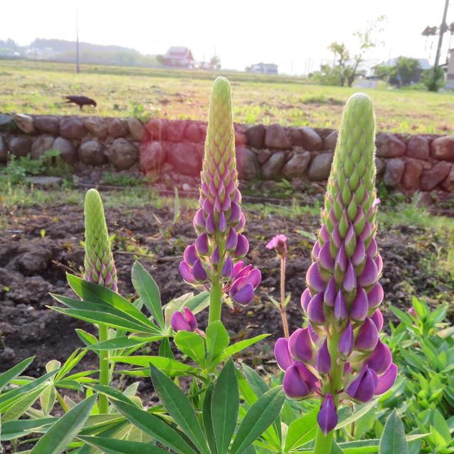#朝陽 #カラス #ルピナス かぁこちゃんパン食べてます(*^_^*)