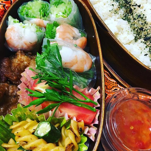 #今日#の#息子弁当作ってて自分で食べたくなりました#生春巻き #唐揚げ#弁当生春巻きくっつく問題皮を戻す時に、ぬるま湯に少し油を入れるとだいぶくっつかない。今日は、#ごま油 入れて味もよし。#高校生男子弁当 #お弁当#おべんとう#オベントウ#onento#lunch#lunchtime #lunchbox#わっぱ弁当 #わっぱ #わっぱ飯 #わっぱ同盟#わっぱ弁当箱 #記録#スウィートチリソース