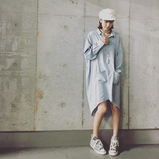 寝坊しそうになった日の朝 着心地の良いシャツワンピを着て。 #converse は#sly コラボ♡ グレーが可愛い♡♡