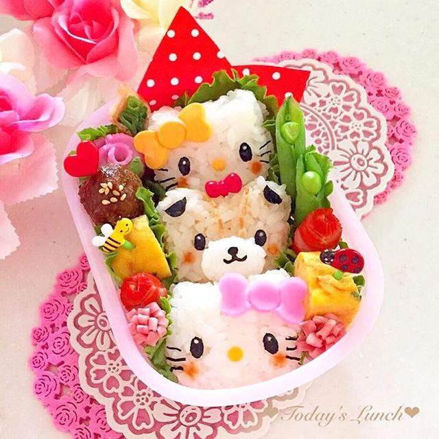 *おはようございます♡年中次女姫のお弁当です♡キティ&タイニーチャム&ミミィがお利口に並んだお弁当です♡先週はこれのリラックマver.作りました♡**出かける途中に、園外保育へ向かう年中さん次女のクラスの集団に遭遇しました○○ちゃんのママぁぁ〜❤️❤️想像はしてたけど、園児からのものすごい熱烈な歓迎をうけるわたし...笑**テンションがあがって、○○ちゃ〜〜ん❤️❤️と次女の名前だけを叫んでわたしに手を振る子供も...まぁだいたい合ってますww**中には省略?しすぎて、ママぁ〜〜!!とわたしに手を振る子供...とびきりの笑顔で手を振り返しました❤️笑間違いであることを祈ります←祈り不要w**肝心の次女はというと、わたしを見つけた瞬間足に抱きついてきて先生に剥がされてました先生、集団行動を乱してすみませんでした**#キャラ弁#デコ弁#幼稚園弁当#サンリオキャラ弁#キティちゃん#ミミィ#タイニーチャム#女子弁当#誕生日弁当#ハローキティ#クッキングラム#ペコリ#mimimomolunch#happybirthday#hellokitty#charaben#kyaraben#decoben#kawaii#foodart#cutefoodforkids#lunchbox#cutebento#kidsbento#cutefood#kurashiru#sanrio