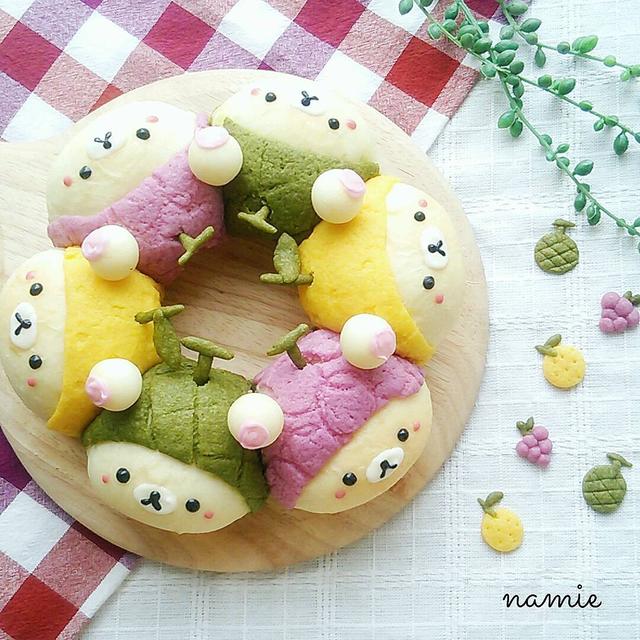 2016.5.20*フルーツのかぶり物コリラックマのメロンパン*ぶどうのクッキー生地は紫いも梨のクッキー生地はかぼちゃメロンのクッキー生地は抹茶*ミニクッキー付き**#korilakkuma #rilakkuma #bread #breakfast #characterfood #characterbread #homemadebread #kawaii #kawaiifood #cute #cutefood #foodart #delistagrammer #リラックマ #コリラックマ #パン #ちぎりパン #デコパン #キャラパン #おうちパン #おうちカフェ #手作りパン #パン作り #キャラフード #メロンパン #朝ごはん #朝ごパン #デリスタグラマー #手作りおやつ #おやつ