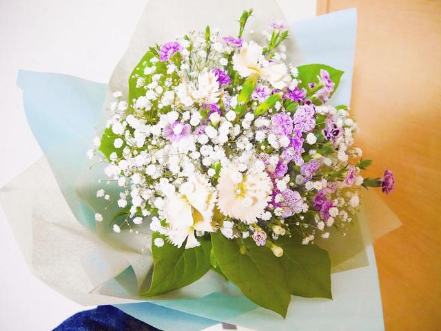 かわいい〜♡ #花束 #flower #かすみ草 #ラフィーネ #sunlips #あざっす #えりか #さすが #はやく花屋なれ #26歳なりました #birthday #あっという間 #酒田祭 #人いっぱい #安定のパイナップル #また来年