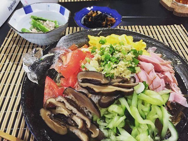 2016.5.19暑い日が続いてます。日本の暑さに比べると、湿度が低いから全然快適だけど暑い!暑いので、具を沢山のせた素麺に。かけつゆは干し椎茸と麺つゆ、酒、砂糖を煮込んで作ったけど、いいお出汁が出てて美味しかったー!♡ 息子もちゅるちゅるなんが好きなのか、母さんのを奪ってました。