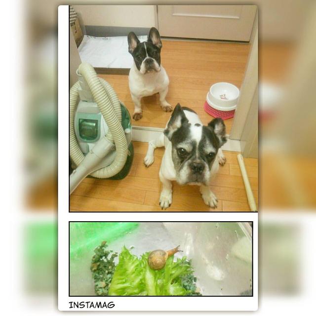 おはようございます 今日もさくら一家は元気です! さぁ!掃除するよ~ #フレンチブルドッグ#カタツムリ#Snail #Frenchbulldog