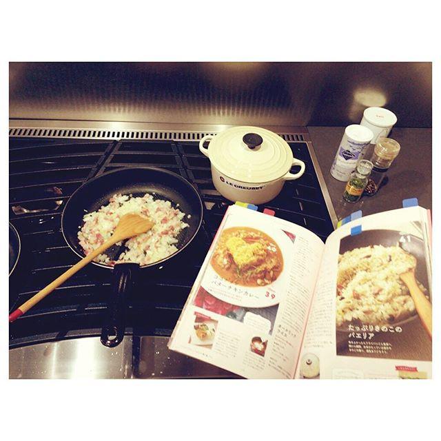 夜は、杏奈さんにいただいた「住谷家のほめられRecipe」に載っているパエリアを ハンバーグとコンソメスープと共に♪ 美味しかった❤︎ @annasumitani