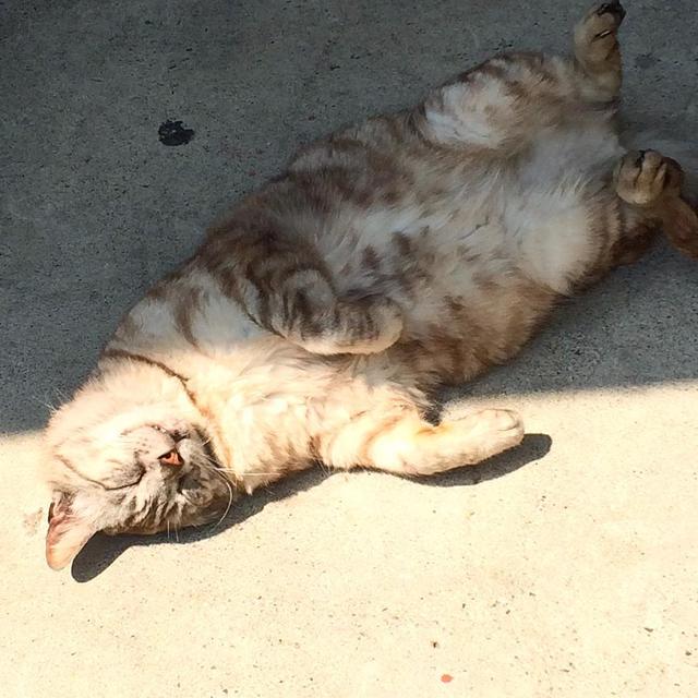 爆睡。すんごい寝方(*^^*) ここはこの子のテリトリー。 居心地が良いみたい♡ #爆睡 #猫 #テリトリー #お昼下がり 今日は#暑い