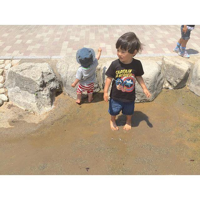 兄さんは去年大好きだった水遊び、今年は洋服が濡れる事が嫌みたいでそーっと遊んでた #3歳11ヶ月#男の子#神経質#成長#親バカ部
