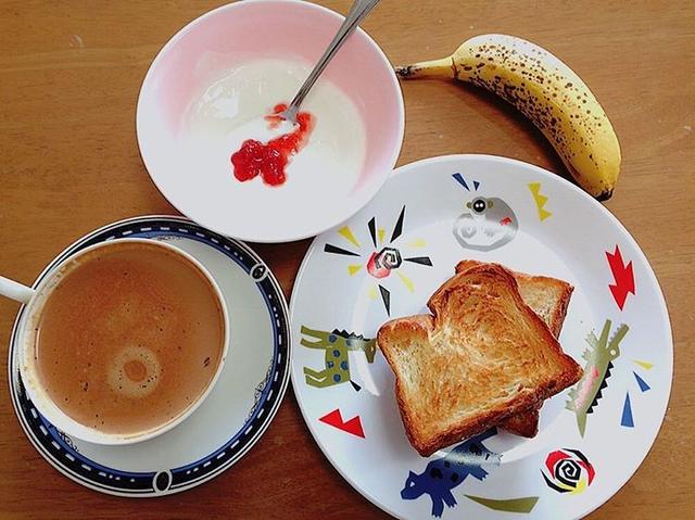 5.21 . breakfast . ☕️ . . . #breakfast #strawberry #tee #bread #happy # # #☕️ #