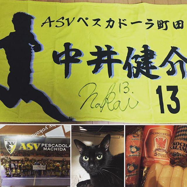 昨日インスタ繋がりで(ペスカ)知り合った @miwako_13 さんから頂きましたありがとうございます\(//∇//)\ ハム、ソーセージセットまで食べるの楽しみ〜ワインに合いそうお供していただいてユニフォーム予約行きました 日根野谷選手の⚽️笑おまけに泊めてもらったお家の猫ちゃん#町田 #fリーグ #フットサル #ペスカドーラ #ペスカドーラ町田 #ネコ #ハム #ソーセージ