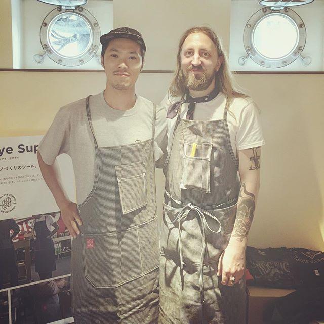 天王洲でやってるポートランドのやーつでお久しぶりにしょーへいとデート。 @handeyesupply というクラフトマンシップ溢れるお店が可愛くてエプロン購入。まずは形からということで、これからお料理がんばろうと思います。写真はデザイナーのTobias氏と!#UnitedStates #Oregon #Portland#Handeyesupply#今度はアメリカに行きたい