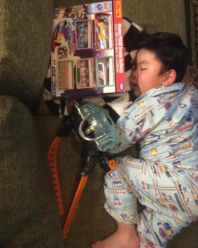 大好きなおもちゃに埋もれて寝てる感じかわいい #あと1時間で誕生日終わりだね #4歳おめでとう #4年って早い #会う度に成長してる #やまとだいすき~
