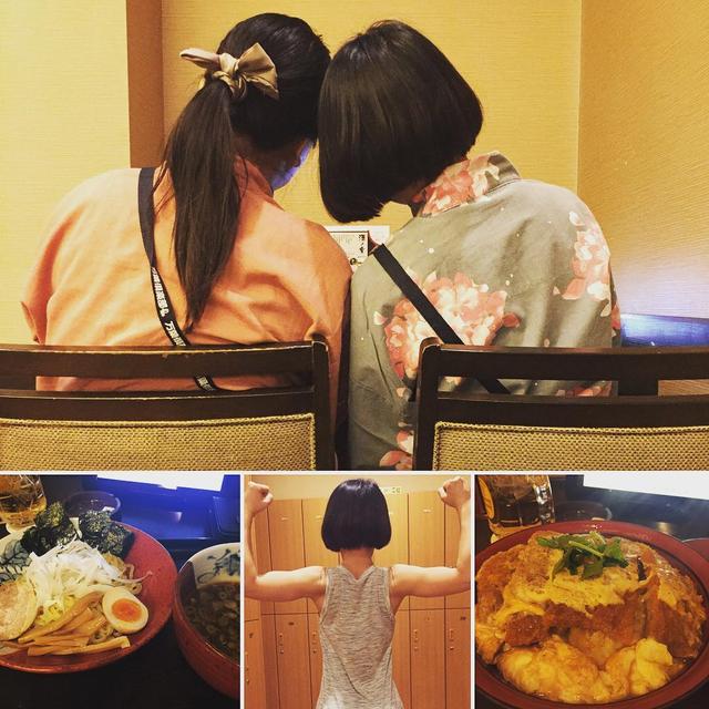 万葉の湯でほっこり♨️もうちょいゴロゴロしたら朝風呂〜 ナゾにタンクトップのはクレイジークルーでGet✨(本当はお買い上げだったのに払い損ね笑⬅︎ @syunpeiitani ごめーん)トレ着にしよーと✨ お腹空きすぎて、つけ麺•そばをそれぞれ食べてカツ丼はシェアーしたけど流石に多かった(つД`)ノ#町田 #万葉の湯 #つけ麺 #カツ丼 #タンクトップ #トレ着