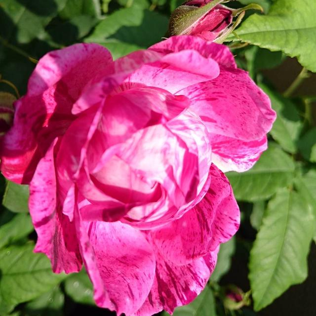 お早うございます*お日様ピッカリ☀縞しま薔薇の中では一番濃い薔薇フェルナンドピシャール*よい日曜日を〜✨#ベランダの薔薇#オールドローズ#フェルナンドピシャール#芳香#oldroses#ofbalcony#FernandoPichar#fragrance#sunnymorningA happy Sunday✨✨Sweet dreams⭐Buenas noches