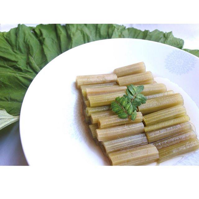 蕗の煮物・・なかなか母のように綺麗なグリーンに煮あがらないまま、早十数年間・・今年も作りました・・炊いてる側から子ども達の「オレ嫌いなヤツだ〜」大合唱・ひとくち食べてもらいましょう(笑)・・・#季節の食材#蕗#ふき#おうちごはん#butterbur