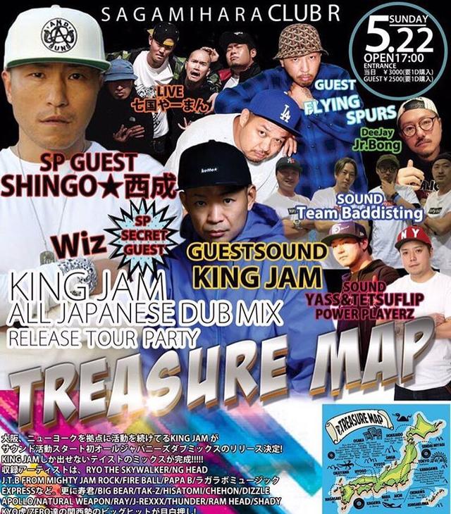 今日は茨城県 → 相模原に移動してTREASURE MAP!!️SHINGO★西成ことシンゴさん、SHADYも参戦、JR,BONG、更にビックシークレットゲスト、そして地元のアーティスト、サウンドも登場します!!️初相模原、皆様宜しくお願いします!!️お待ちしております!!️#treasuremap #kingjamオールジャパニーズダブミックス #kingjam #相模原 King Jam live in Sagamihara Japan tonight! It's called Treasure Map at club R! Don't miss it!