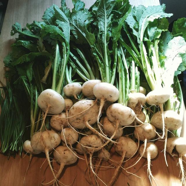 かぶー!!!!!!!+にら #本日の収穫