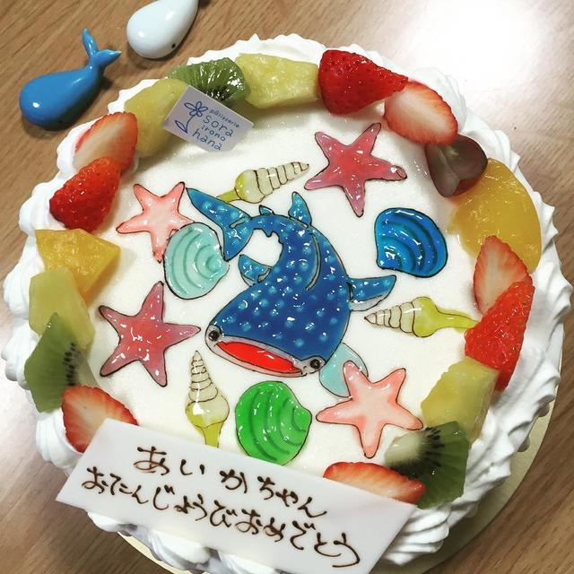 誕生日おめでとう やっとみんな揃ったから 3日遅れの誕生日ケーキ #誕生日 #誕生日ケーキ #娘の大好きな #ジンベエザメ #かわいいな #食べるのもったいない #けど #食べる #そらいろのはな