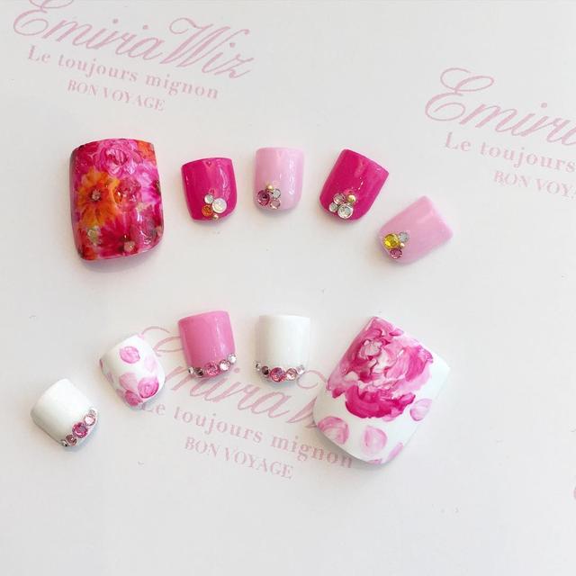 フットネイルもサンプル作り中パレフローラルネイルマドモアゼルローズネイル✨ネイルチップ✨見てるだけでかわいい癒し✧*。ヾ( ́ /// ` )ノ゙✧*。.#EmiriaWiz #nail #フットネイル #pink#パレフローラル #マドモアゼルローズ #love