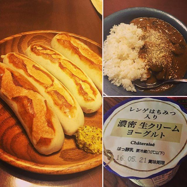 月曜の朝はガッツリ〜カレーのお供にパルメザンチーズは必須です❤️ さっそく @miwako_13 さんから頂いたソーセージヨーグルトの賞味期限が切れてるなんて気のせいですもともと発酵してるから大丈夫ヽ(•̀ω•́ )ゝ✧笑皆さん今週もがんばっていきましょ #朝食 #ガッツリ #カレー #パルメザンチーズ #自家製ソーセージ #シュマンケルステューベ #ヨーグルト #賞味期限