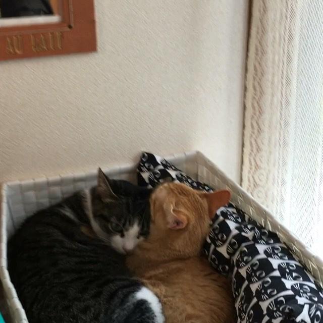 ねぇねぇ、暑くないのー? 朝からイチャイチャ #おはよう #goodmorning #ごまときなこ