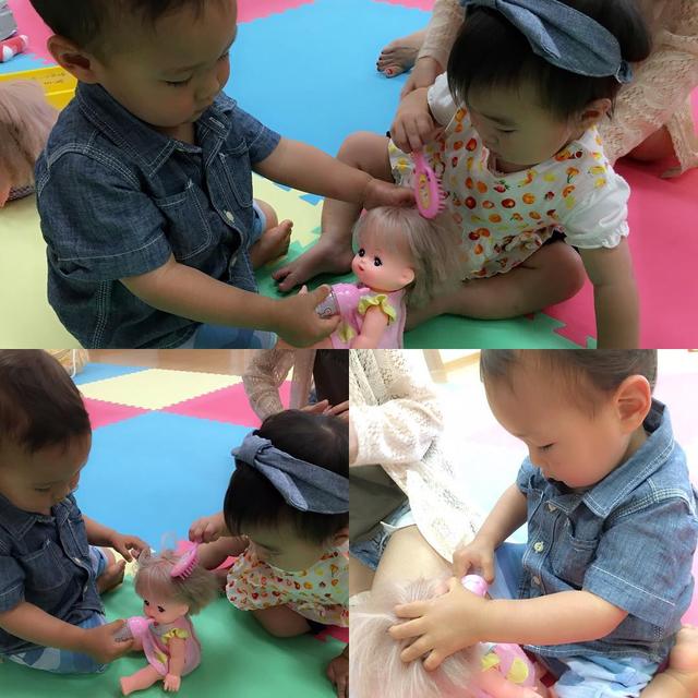 今日はおうきまんと児童館へ〜 .つ、ついに2人に赤ちゃんが... イクメンおうきがミルクあげてひまちゃんが髪とくっていう(笑)しかもひまちゃんすぐに育児放棄して遊びにいくしww .こんな光景がみえるのはいつになるかな〜〜♪ .#月曜はおうきディ #イクメン#20年後くらいにこうなっててほしい#ただただ母の妄想〜