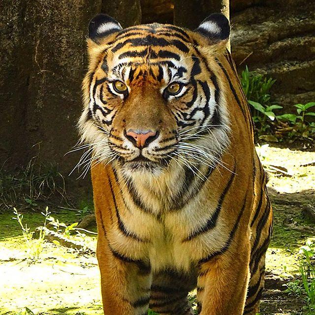 ✧インダ/Indah(♀)✧.正面から見える真っ白な虎耳状斑が可愛いインダ姉さん☺️.→顔はワイルドだけど..【2016.05.05撮影】#上野動物園#uenozoo#動物園#zoo#動物#スマトラトラ#トラ#虎#タイガー#インダ#コンデジ#デジカメ#デジタルカメラ#SumatranTiger#コンデジ写真部#コンデジら部#虎耳状斑