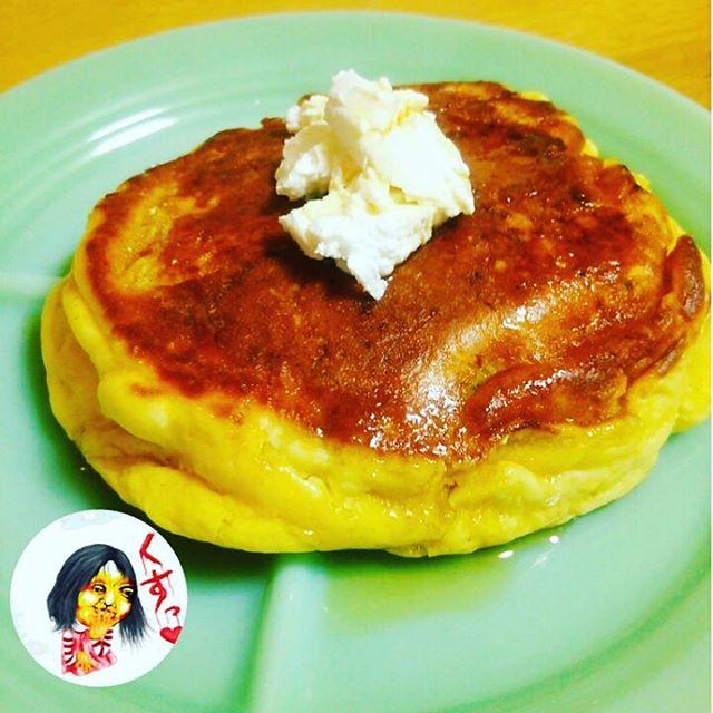 かぼちゃの煮物入り パンケーキできあがりん♪ #あさごはん #うちごはん #パンケーキ