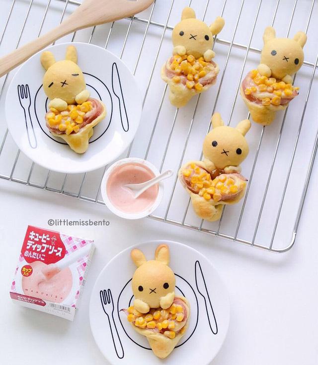 Miffy corn & ham bread with mentaiko sauce! Love love love Kewpie's mentaiko dipping sauce. I used it to prepare the toppings for the bread buns. Can you tell that Miffy is holding on to heart♡? #baking #homemade #miffy #littlemissbento #mentaiko #bread # # #キューピー #ディップソース #明太子 #めんたいこ #ミッフィー #plateplate #japanloverme #whati8today #tablephoto #cookinggram #edibleart #buzzfeedfood #kurashirufood #kewpie