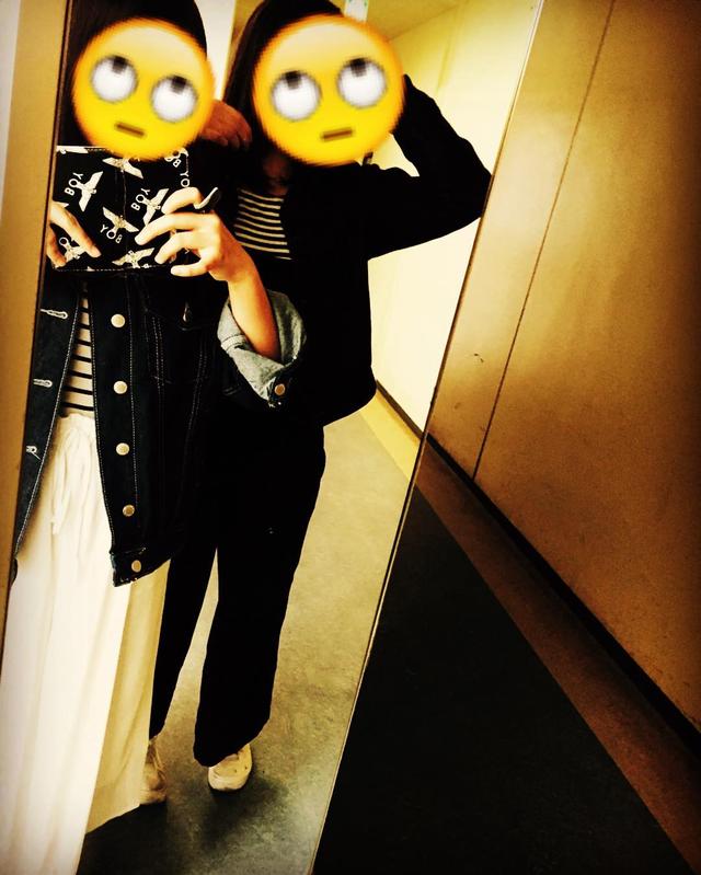 ボーダーにデニムにフレアかぶり #仲良すぎて気持ち悪い☺️