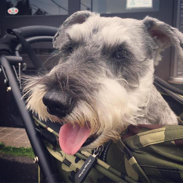 本日は月1 診察デー。 * レオン ど緊張中ではぁはぁです * #ミニチュアシュナウザー #車椅子犬 #脊髄梗塞犬 #副腎腫瘍